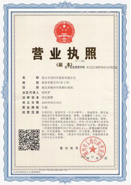 程力專用汽車股份有限公司各類專用汽車的專業(yè)廠家,大型專用汽車廠。國(guó)內(nèi)園林綠化、石油化工、市政環(huán)衛(wèi)、壓力容器專用汽車商。注冊(cè)“程力威”牌,產(chǎn)品代碼:“CLW”。東風(fēng)、解放、福田、重汽、陜汽、北奔等公司的重要合作伙伴,主要從事各類專用汽車的業(yè)務(wù),同時(shí)也銷售各大型廠家的整車及配件。公司擁有自行出口權(quán),其主導(dǎo)品種有灑水車系列、吸污(吸糞)車系列、垃圾車系列、掃地車系列、油罐加(運(yùn))油車系列、高空作業(yè)車系列、清障車系列、隨車吊系列、自卸車系列、教練車系列、半掛車系列、化工車系列、消防車系列、廂式(冷藏車)系列、牽引車系列、粉粒物料車系列、攪拌車系列、壓力容器系列、專用車配件等十八大系列300多個(gè)品種車型。同時(shí)批發(fā)東風(fēng)、解放、楚風(fēng)各種二類底盤(pán)。